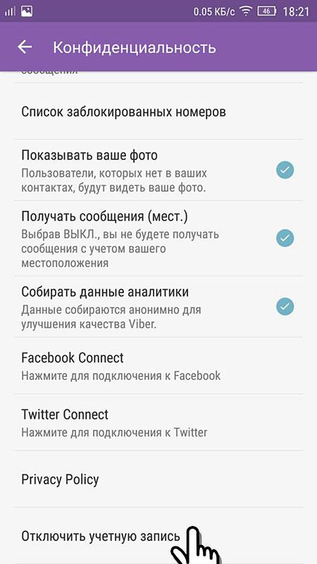 - У цьому пункті слід знайти пункт з назвою «Відключити обліковий запис».