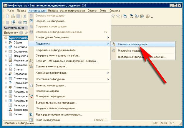 Для запуску процедури оновлення конфігурації використовуйте пункт меню «Конфігурація → Підтримка → Оновити конфігурацію».