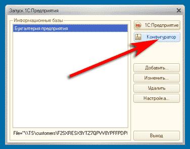 Відкрийте вашу інформаційну базу в режимі Конфігуратора (режим Конфігуратора доступний користувачеві 1С з повними правами доступу).