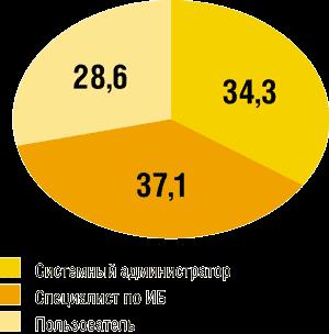 Аудиторію учасників дослідження становили в основному кваліфіковані фахівці з ІБ (37,1%). За ними слідували системні адміністратори (34,3%) і користувачі (28,6%). Таким чином, близько 71% респондентів є професіоналами в ІТ-індустрії (рис. 1).