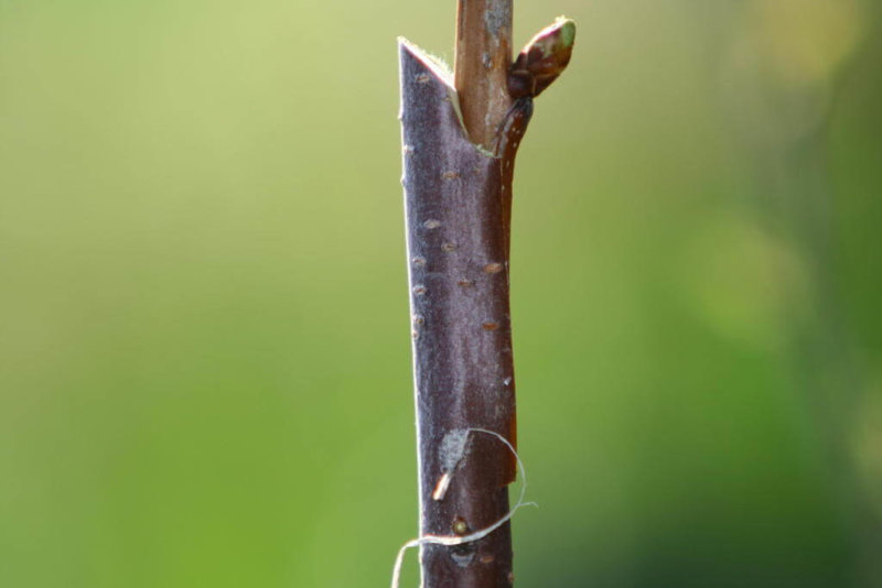 Тоді, коли товщина підщепи і черешка практично однакові, застосовуємо копуліровкі або щеплення черешком. Заготовлений заздалегідь держак надійно фіксуємо до стовбура і у місці стику міцно обв’язуємо плівкою. Зрізи обробляємо замазкою.