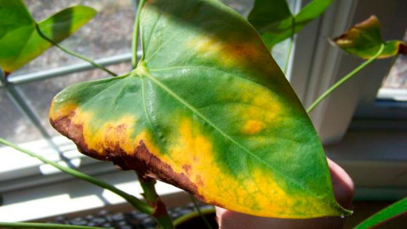 Причиною пожовтіння листя у антуріума є, частіше за все, відсутність необхідної кількості світла і тепла. Перенесіть квітка на південне вікно, додайте його ближче до джерела світла, включайте на більший час фитолампы – і проблема повинна буде піти.