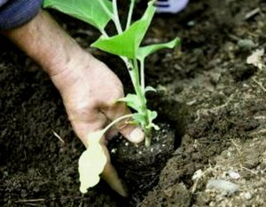 Процедура переміщення в грунт здійснюється таким же чином, як процедура переміщення перцю: схематично в гряді влаштовуються канавки, туди вливається побільше води, і в цю брудну рідину вмощується рослинність.