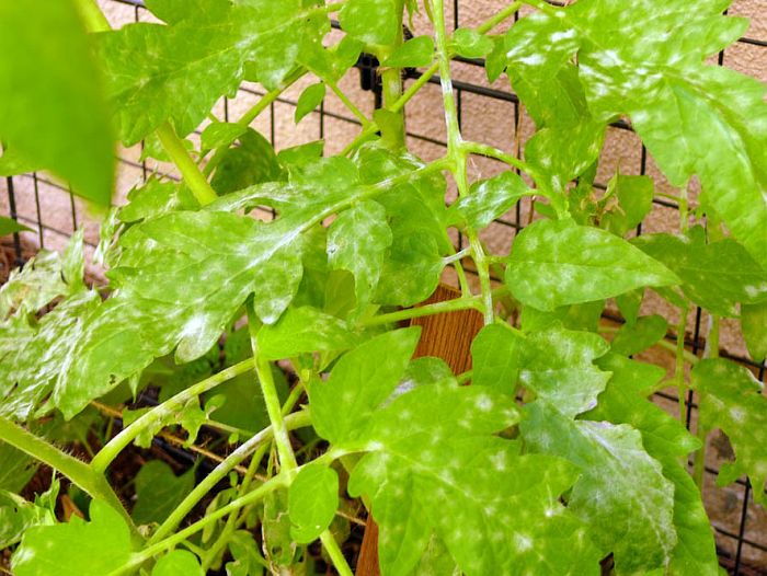Причини утворення білих плям на листках томатів