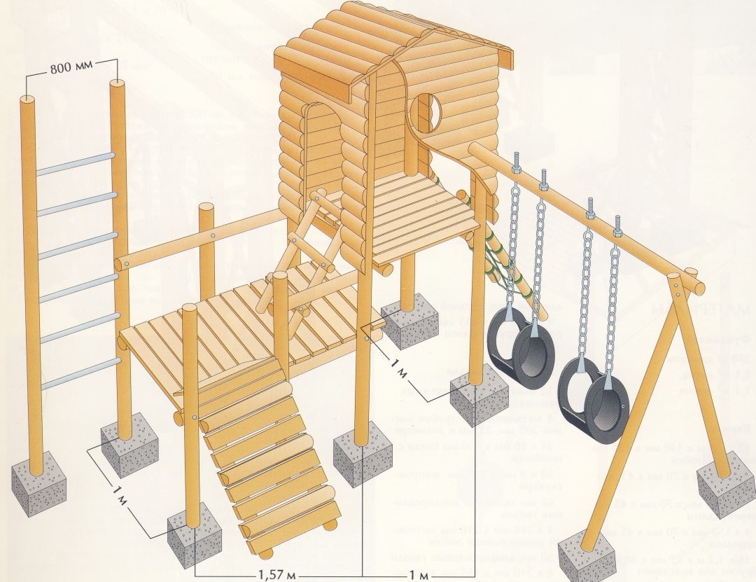 Після того як схема складена, приступають до безпосереднього виконання робіт. Далі піде мова про те, як спорудити дані конструкції своїми руками. Не забуваємо взяти в помічники майбутніх маленьких господарів майданчика.
