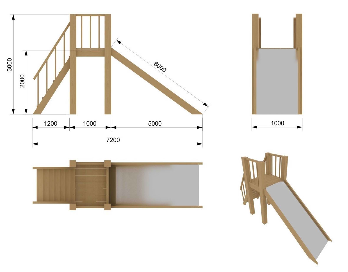 При спорудженні гірки для малюків старше 6 років, то можна додатково облаштувати драбинки і турніки різного рівня.