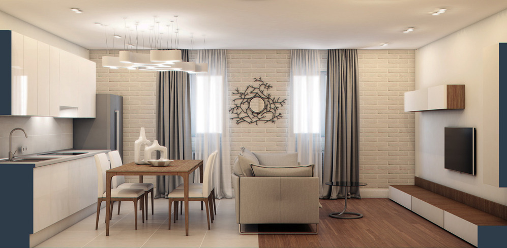 Об’єднання кухні і вітальні в більшості випадків сприяє поліпшенню виду приміщення. Часто це робиться у випадку, коли кухня має невеликі розміри. Завдяки об’єднанню двох кімнат відбувається візуальне збільшення.