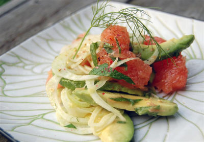 У салати можна додавати цибулину без додаткової обробки. Просто фенхель нарізане тонкими смужками, також нарізати яблуко і селеру. У нарізані овочі можна додати листовий салат і мигдаль. Заправкою до такого салату може бути винний оцет або оливкове масло. Герой нашої статті також добре поєднується з: