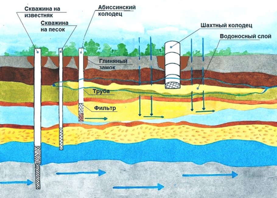Свердловини на пісок, гравій, вапняк використовуються найчастіше. На глибині понад 10-15 метрів водозабору вода чистіша, оскільки пісок і кам’яні породи є хорошими природними фільтрами, що затримують біологічні забруднення.
