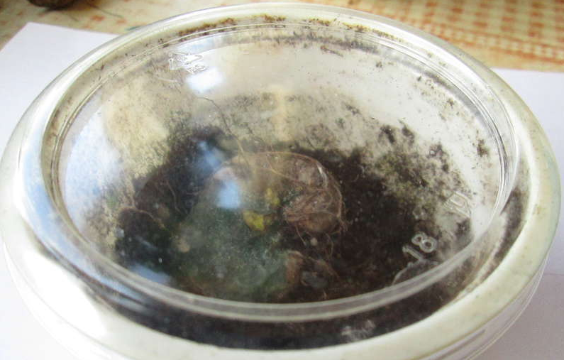 Ємність ставимо в теплу півтінь і чекаємо, коли корінці відросте на 1,5-2 см. Приблизно на 15-20-й день. Садимо в підготовлений грунт. Грунт піщано-торф’яна волога суміш, де основне – торф (4 частини).