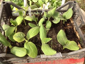 При вирощуванні кабачків застосовується окрема тара для кожного паростка.