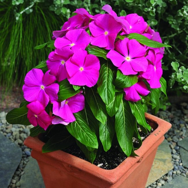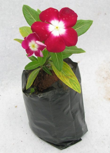 Для сусідства з катарантуса підходять однорічні квіти. Він прекрасно уживеться в одній клумбі з петунією, лобелією і бальзаміном.