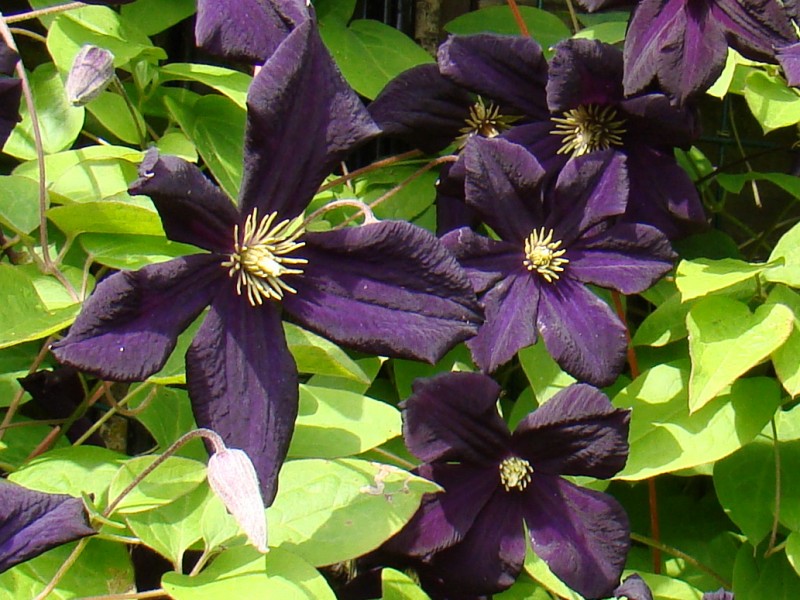 Клематис сорту «Романтика» з чорно-фіолетовими квітами