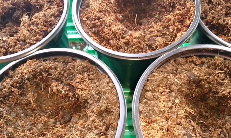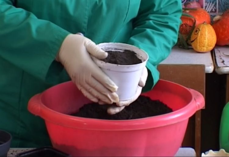 Контейнери заповнюють грунтом приблизно на 2/3. Грунт змочують.