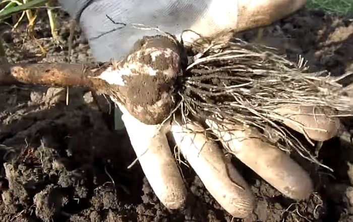 Руками висмикувати не варто, надземна частина легко відривається від головки, і її доведеться розшукувати в ґрунті.