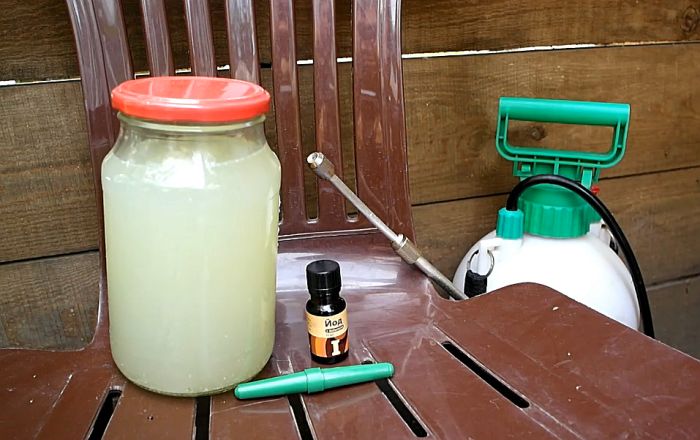 Для лікування, профілактики і підживлення городники застосовують різні рецепти сироватки з йодом. Так, для профілактики готують наступний склад: