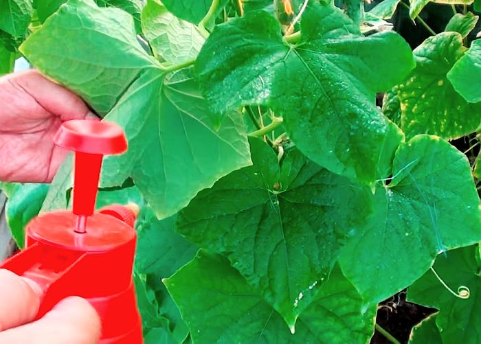 Сумішшю обприскують молоді кущі огірків до появи ознак захворювань.