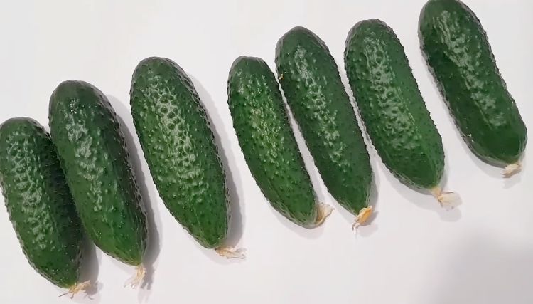 Плоди довжиною 10-12 см відрізняються однорідністю, темно-зеленим кольором і добре вираженими шипами.