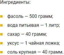 Квасолю можна використовувати як червону, так і білу. Її попередньо замочують на ніч у холодній воді і відварюють протягом години.