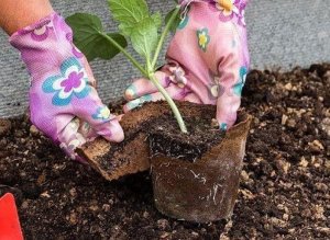Що стосується безпосередньо процесу пересадки, кожна рослина потрібно акуратно вийняти з стаканчика разом із земляною грудкою. Це запобіжить порушення цілісності кореневої системи. В одну ямку можна при необхідності висаджувати по парі саджанців. У цьому випадку розтяжку потрібно буде направити в протилежні сторони.