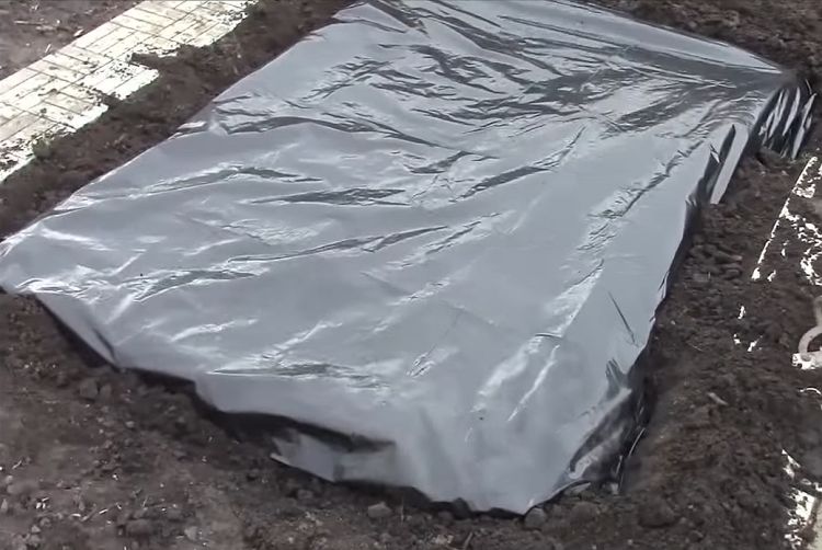 Грядку рясно поливають теплою водою і зверху розстеляють чорну плівку, яку фіксують по краях брусками або цеглою.