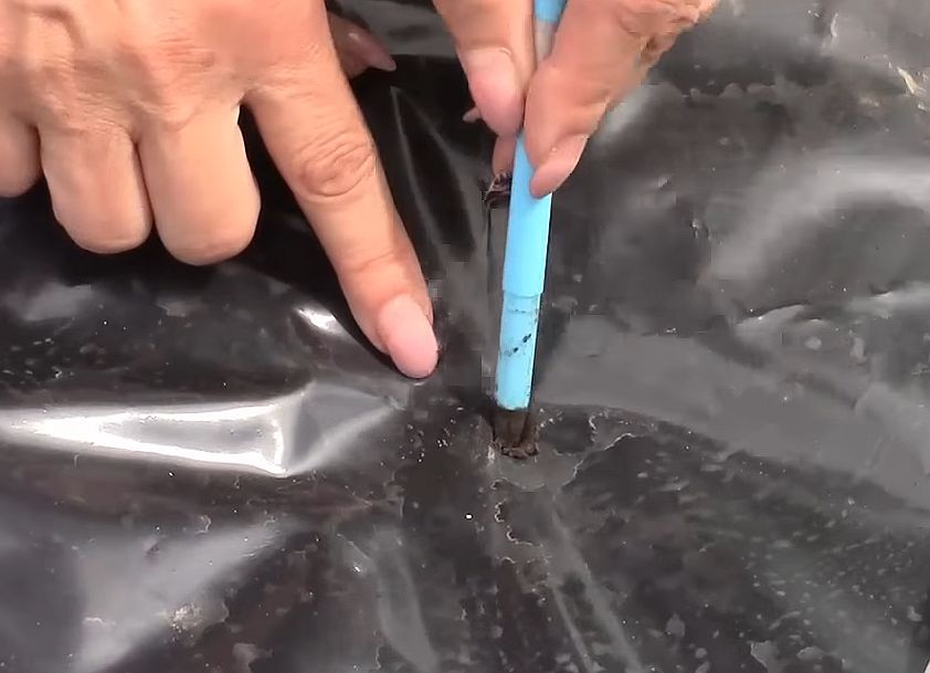 Через 2-3 дні можна приступати до посадки огірків. Проробляємо в плівці невеликі отвори, наприклад, олівцем.