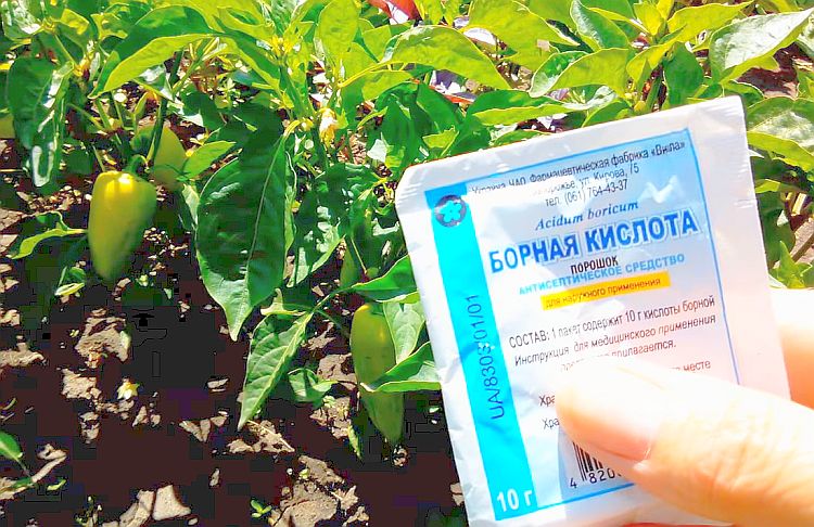 Сполуки бору необхідні рослинам для росту і розвитку плодів. Борна кислота використовується для перців