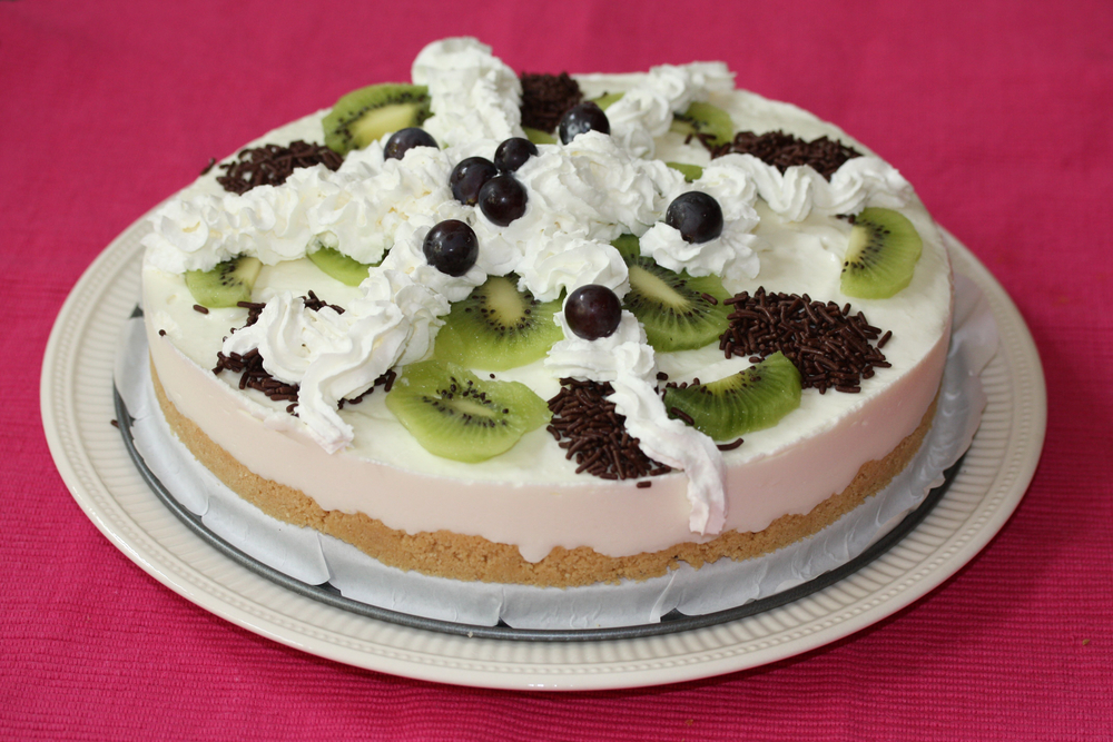 Торт з ківі готують з пісочного тіста або бісквітних коржів. Для начинки можна взяти крем з йогурту або сметани.