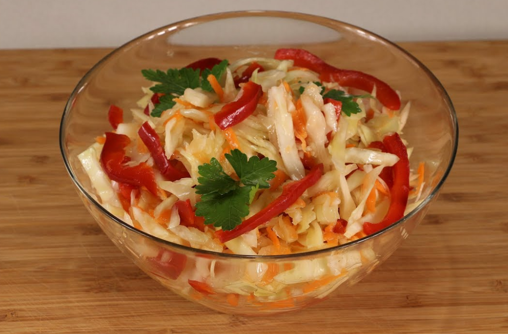 Квашена капуста — джерело вітамінів і мікроелементів, яких так гостро потребує наш організм в холодну пору року. Зробити закуску ще цікавіше і корисніше допоможе доданий в заготовку болгарський перець. Знадобляться наступні інгредієнти:
