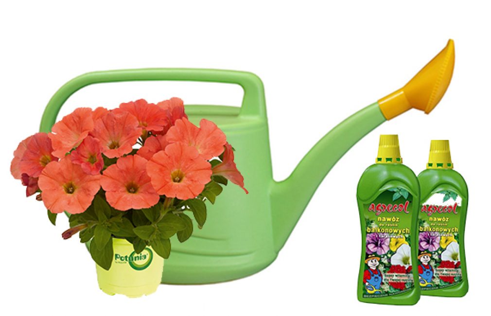 При вирощуванні в домашніх умовах краще користуватися рідкими добривами. Перший полив проводять через тиждень після пересадки рослин. Удобрювати петунії потрібно 1 раз в 2 тижні.