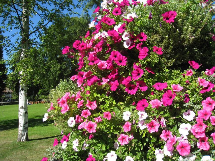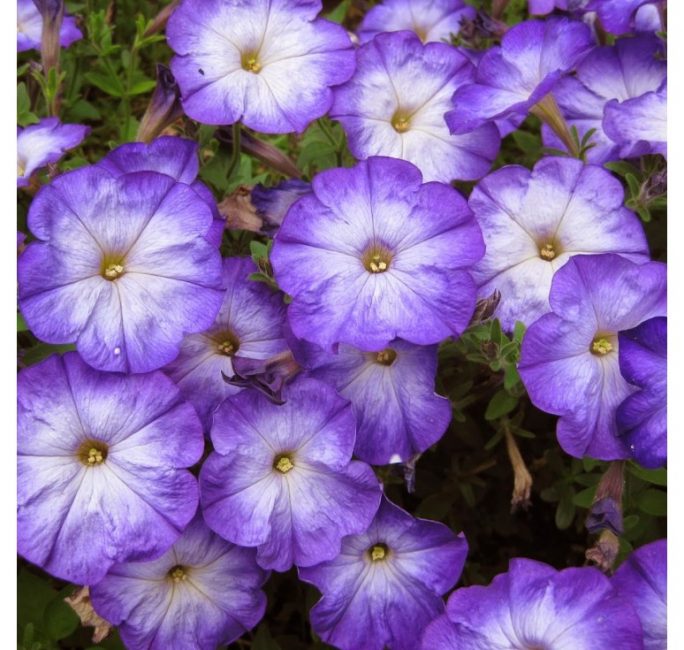 Всі сорти швидко нарощують зелену масу, рясно цвітуть. Якщо подивитися на квітучу вегетативну петунію – перед очима постає величезний куля, всипане яскравими квітками.