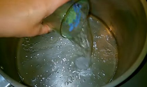 Посуд миють у мильно-содовим розчином і дуже ретельно прополіскують, щоб не залишилося навіть слідів миючого засобу.
