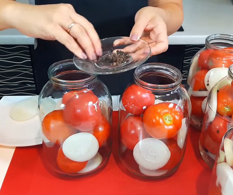 Мариновані помідори з цибулею в банках на зиму покласти на бік і дати охолонути.