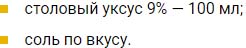 Згідно з рецептом, вам знадобляться спеції: лаврушка, три горошинки перцю і п’ять чорного, цукор (60 гр), сіль (25-30 гр), пів склянки оцту.
