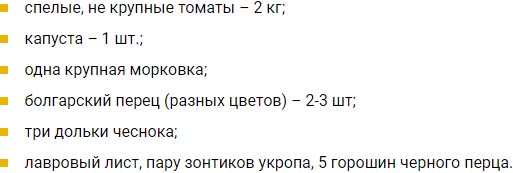 Щоб надати консервованих помідорів з капустою аромат, заготівлю на зиму доповнюють болгарським перцем. У такому разі потрібно: