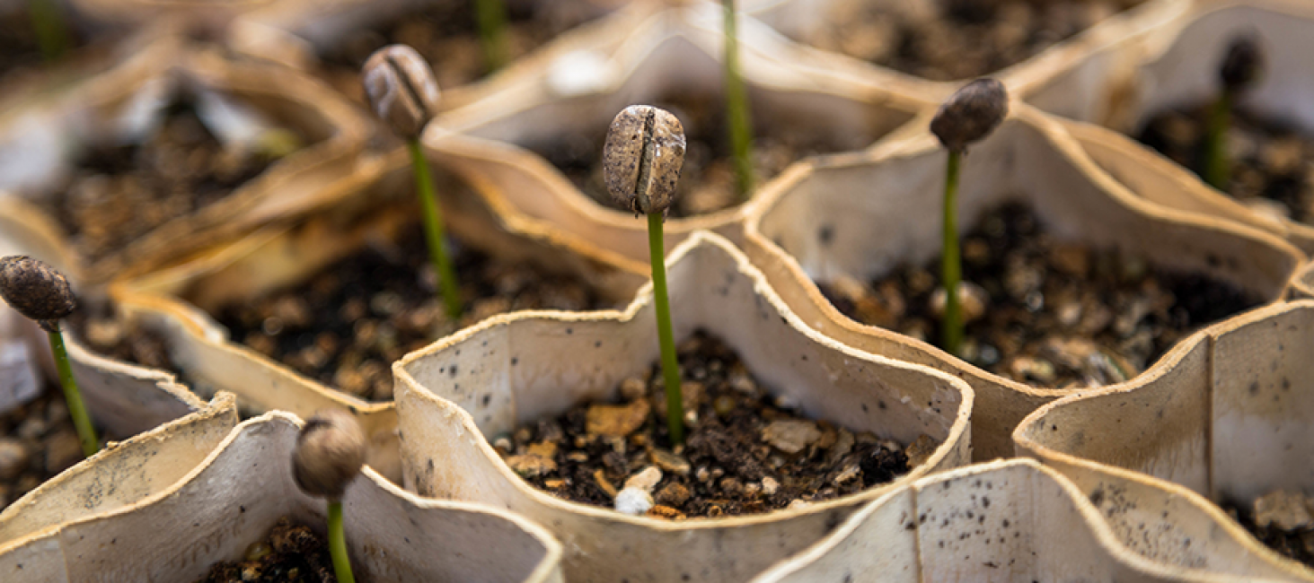 Кавове дерево віком 3-4 місяці в індивідуальних горщиках
