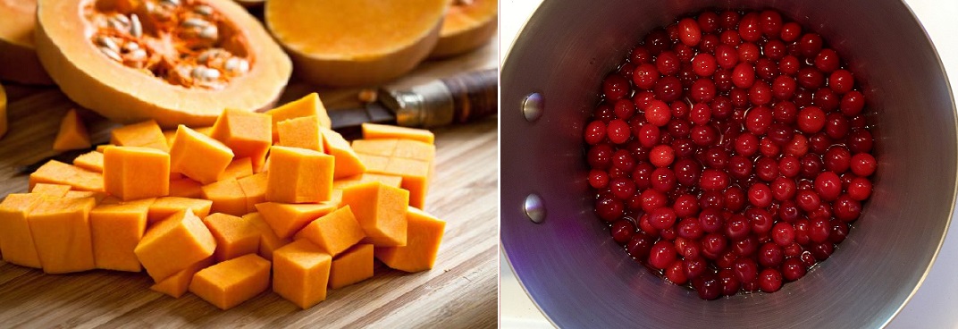 - Для початку потрібно підготувати гарбуз: почистити від шкірки і насіння, після чого м’якоть розрізати на шматочки