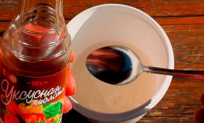 На огірках оцет застосовують обережно, так як це засіб може обпалити листя, і замість користі завдати непоправної шкоди рослинам. Для приготування розчину знадобиться 50 мл оцту 9% на десятилітрове відро. Обприскування проводяться тільки в похмуру прохолодну погоду.