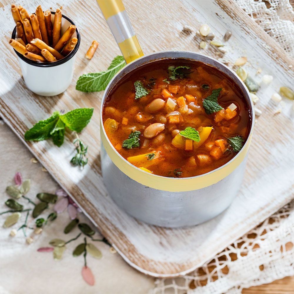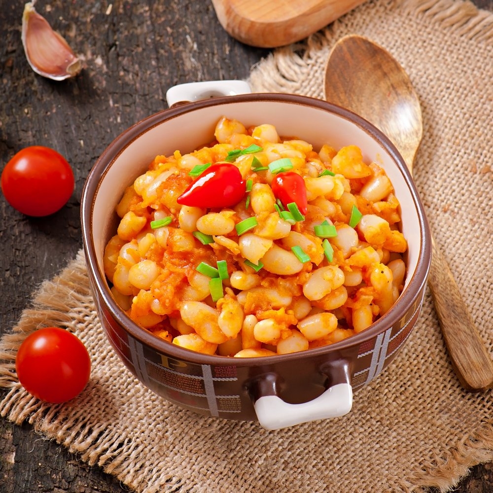 Основні компоненти в овочевий суміші — квасоля, томати, цибулю.