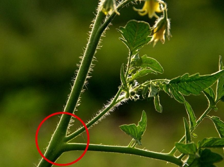 Потім до цього кілочка підв’язують стебло. Щоб верхівка рослини не звисала і не розламалася під вагою плодів, по мірі росту місце підв’язування змінюють.