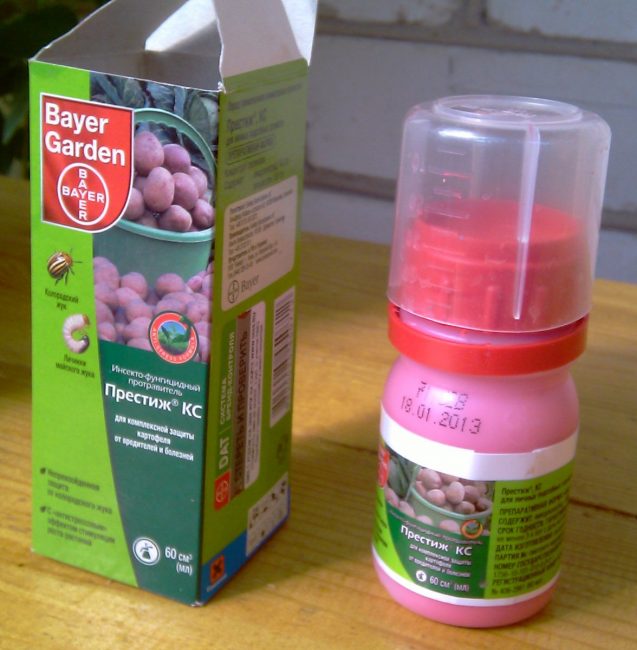 - имидиаклоприд; засіб від комах, розроблена більше десяти років тому і мають прекрасну характеристику: захист бульб, оброблених ним, зберігає свою ефективність протягом півтора місяців; крім колорадського жука бульби будуть захищені від цикад, попелиці, кліщів; а грунтові паразити (капустянки, хрущі, дротянки і совки) будуть обходити ділянку стороною;