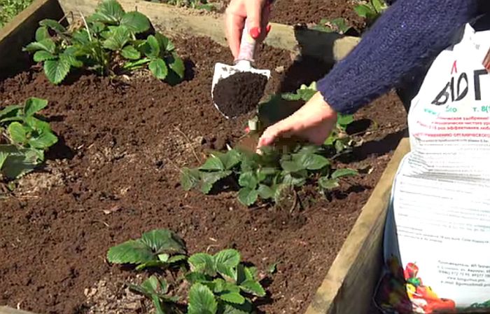 Ягідна культура любить чорноземні, багаті на гумус землі. Якщо на ділянці грунт родючий, можна обійтися тільки мінеральними добавками. Якщо полуниця росте на піщанику або грунт на ділянці виснажена, внесення агрохімікатів зашкодить, особливо якщо закладати в грунт в сухому вигляді.