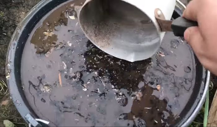 З свіжого гною спочатку готують концентрат у співвідношенні 1 відро органіки/4 відра води. Залишають його в теплому місці, щоб добре перебродив, тривалість процесу – від 2 до 5 днів. За цей час зі свіжого коров’яку вийде аміак – небезпечне своїм палючим дією речовина.