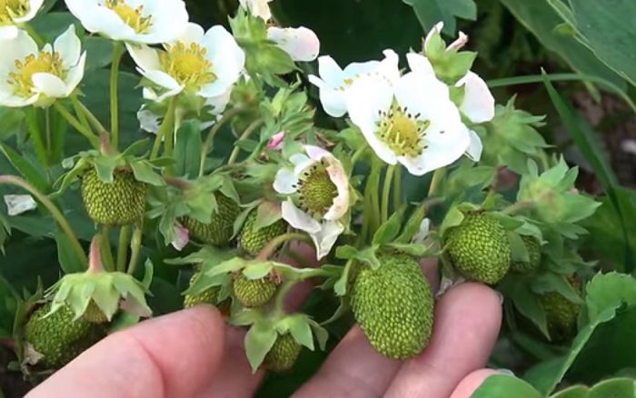 Додаткові підгодівлі потрібні, якщо полуниця погано нарощує вегетативну масу і формує мало суцвіть. При появі подібних проблем полуницю підгодовують ще по одному разу до початку цвітіння і в період масового зацвітання.