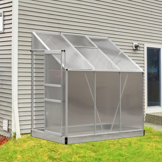 Пристінні теплиці — вдалий варіант для побудови парника. Основною перевагою є менша витрата матеріалів. Однієї і стінок буде служити частину будинку або інша масивна споруда.