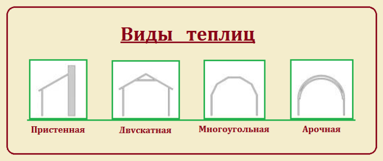 Виходячи з форми конструкції, теплиці з полікарбонату можна розділити на 4 основні види: