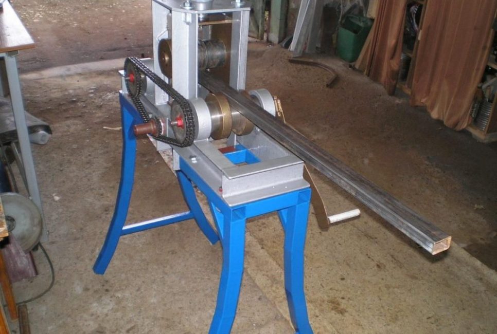 - Для додання арочним стійок зігнутої лінії необхідно спеціальне обладнання — трубогиб. Як правило, в місцях продажу профільної труби є верстати профилегибы з потужними вальцями.