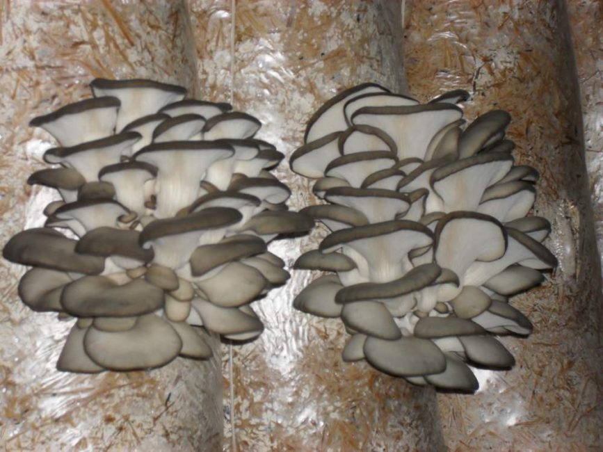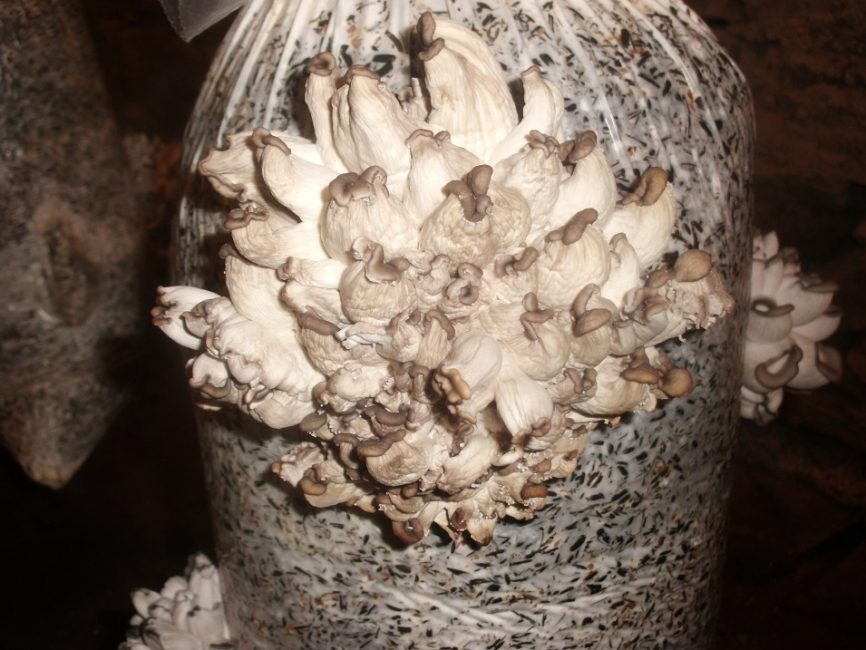 Якщо все зроблено правильно і умови дотримані, через кілька днів з’являються перші плодові тіла грибів. Саме час плодоношення складає від 1.5 до 2 тижнів.