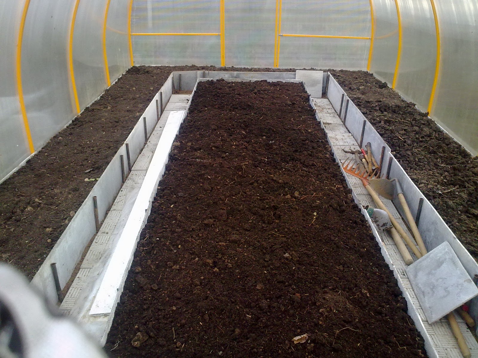 У вже використаної теплиці рекомендується провести заміну верхнього шару грунту на новий (10-15 см). Грунтова суміш повинна складатися з органічного добрива, лісовий або дернової землі з розрахунку 1:1.