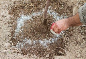 Необхідно уточнити, що вносити мінеральні добрива безпосередньо під стовбур дерева не можна. Перед підгодівлею формуються пристовбурні кола на відстані півметра від дерева, і лише в них вносяться поживні речовини. Це сприяє кращому всмоктуванню необхідних елементів в корені садового дерева.